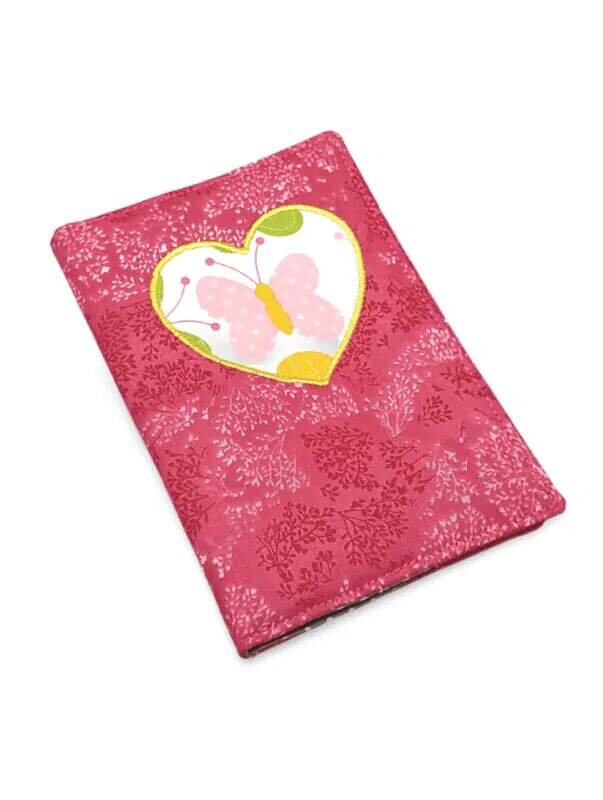 Obal na očkovací a zdravotní průkaz dítěte - Srdce a růžový motýl