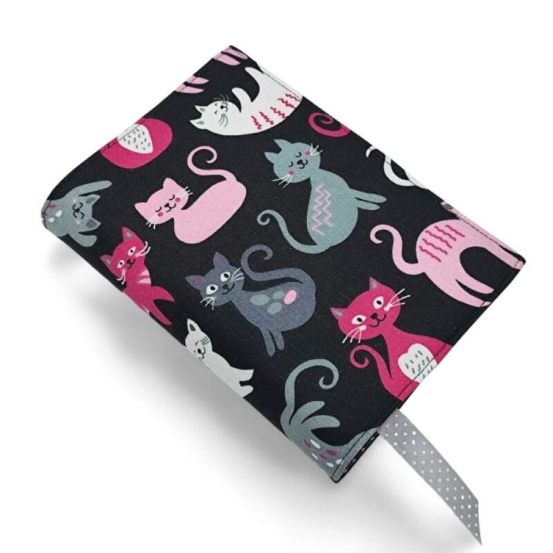 Nastavitelný obal na knihu v různých velikostech - Kočky - růžové - velikost M