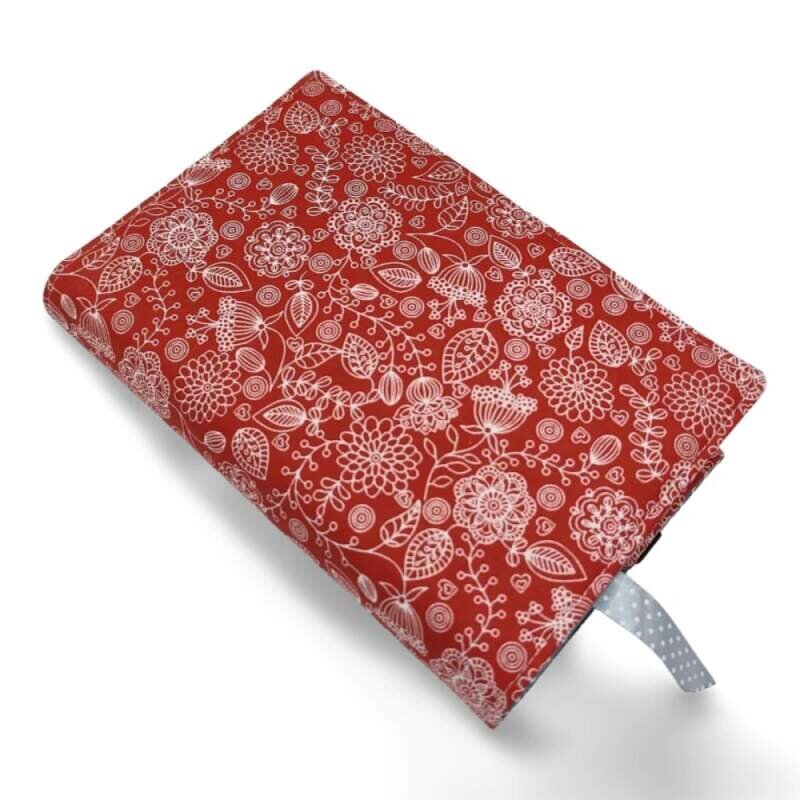 Nastavitelný obal na knihu v různých velikostech - Folk Flowers - červená - velikost S