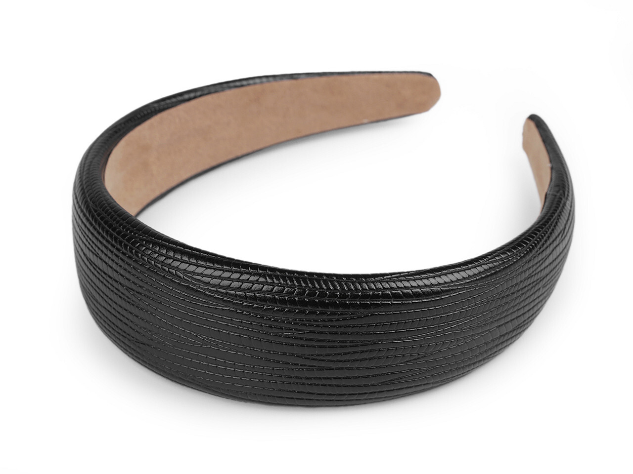 Szeroka opaska z ekoskóry o delikatnej fakturze powierzchni jest elegancka i stylowa. Przyda się do codziennego noszenia i na imprezę.Wewnętrzna strona opaski jest pokryta miękką tkaniną, przyjemna w noszeniu. przeczytaj całość