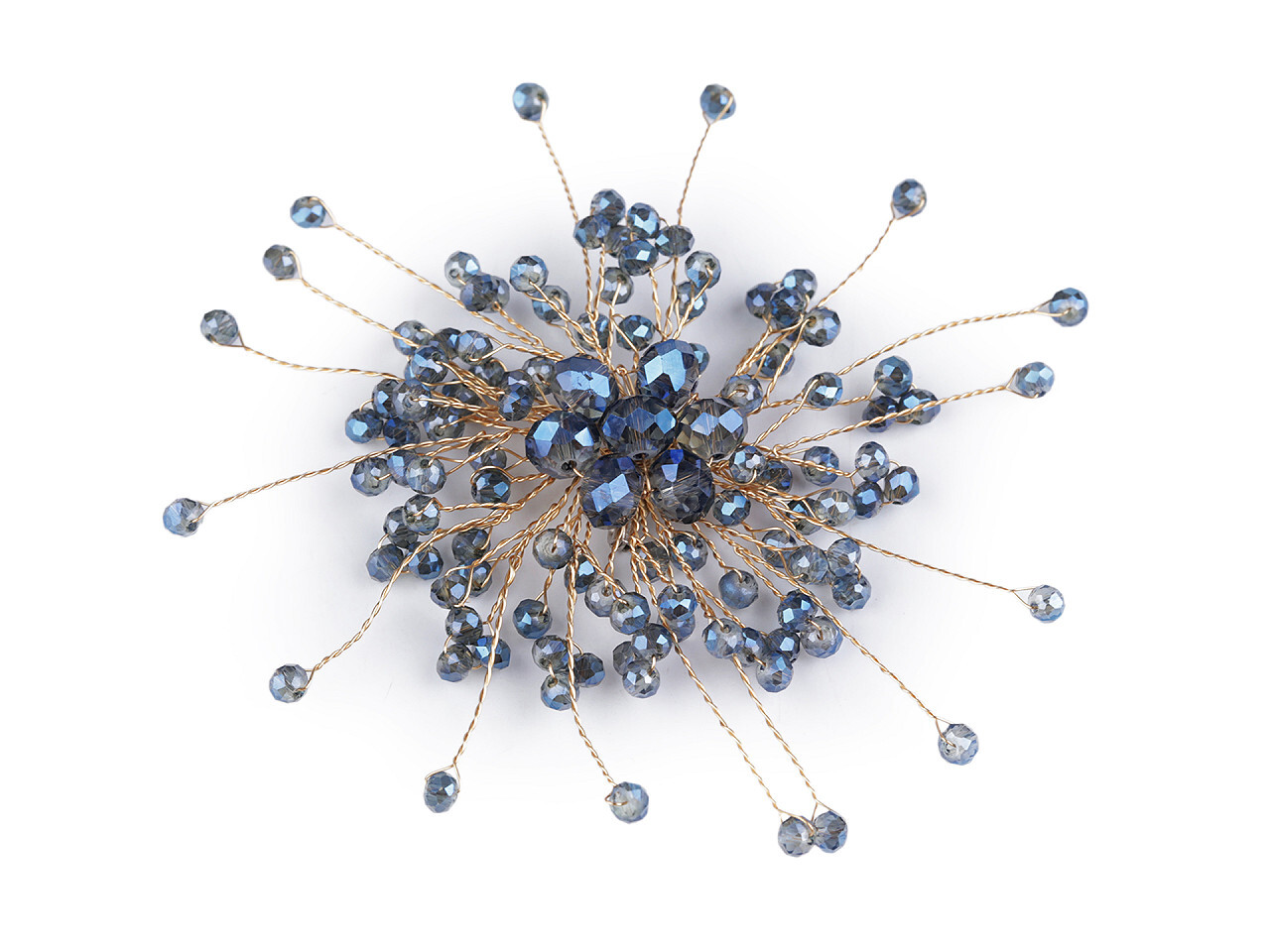 Brož se skleněnými broušenými korálky Hand made - 1 ks - 8 (314) modrá zlatá