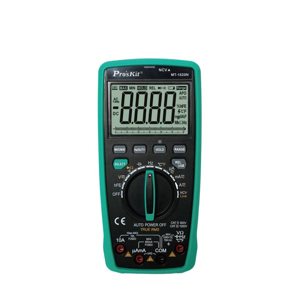 Profesionální digitální multimetr. Duální 3 5/6 displej a USB rozhraní.Měřící rozsahy:Vdc=600mV-1000V,Vac=6-750V,Idc=600uA-10A ,Iac= 600uA-10A,R=600Ohm-60MOhm,C=60nF-99,9mF, f= 10Hz-30MHz,t= -20-+1000°C.Další fce: tepl. v F,test diod a tranzistrů. rozhraní USB-komunikace softwaru a multimetru...