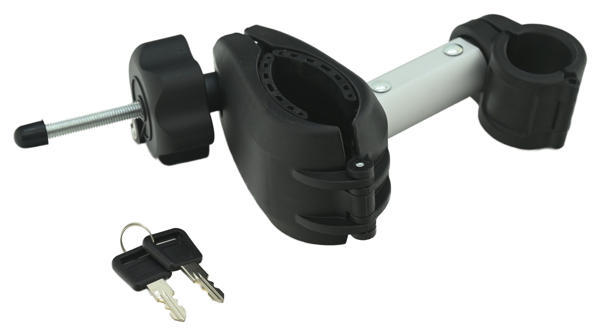 Ten kompletny uchwyt ramy został zaprojektowany specjalnie do bagażników E-BIKE i zawiera praktyczny zamek oraz parę kluczy, co gwarantuje prostą i bezpieczną obsługę. Dzięki krótkiej konstrukcji uchwytu otrzymasz kompaktowe i efektywne rozwiązanie, które łatwo przymocuje ramę roweru do bagażnika i zminimalizuje ruch podczas transportu. Wykorzystaj ten zapasowy uchwyt, aby zwiększyć komfort i pewność podczas przewożenia swojego roweru elektrycznego.