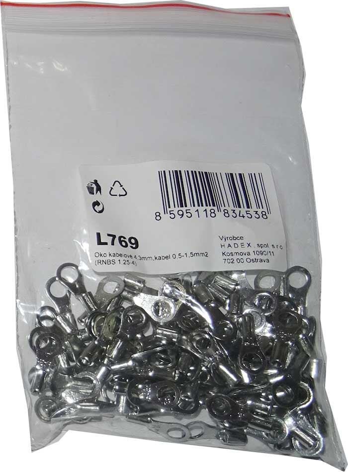 Oko kabelové 4,3mm,kabel 0,5-1,5mm2 (RNBS 1,25-4), balení 100ks
