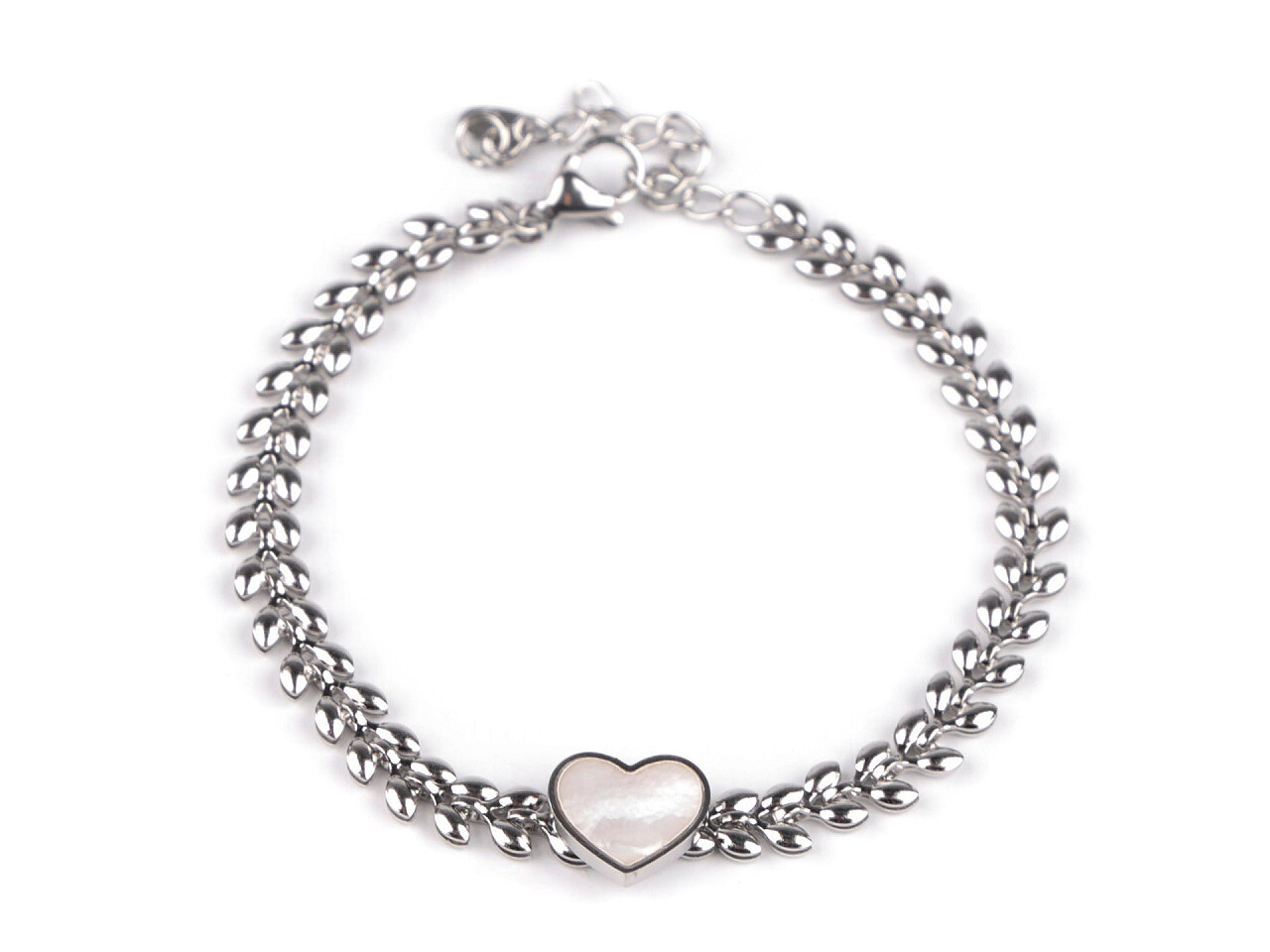 Náramek z nerezové oceli srdce - 1 ks - 2 stříbrná perleť