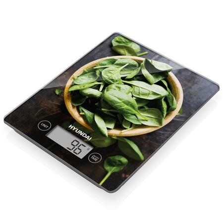 - Digitální váha Hyundai KVE893B disponuje rozměry 18 × 2 × 20 cm