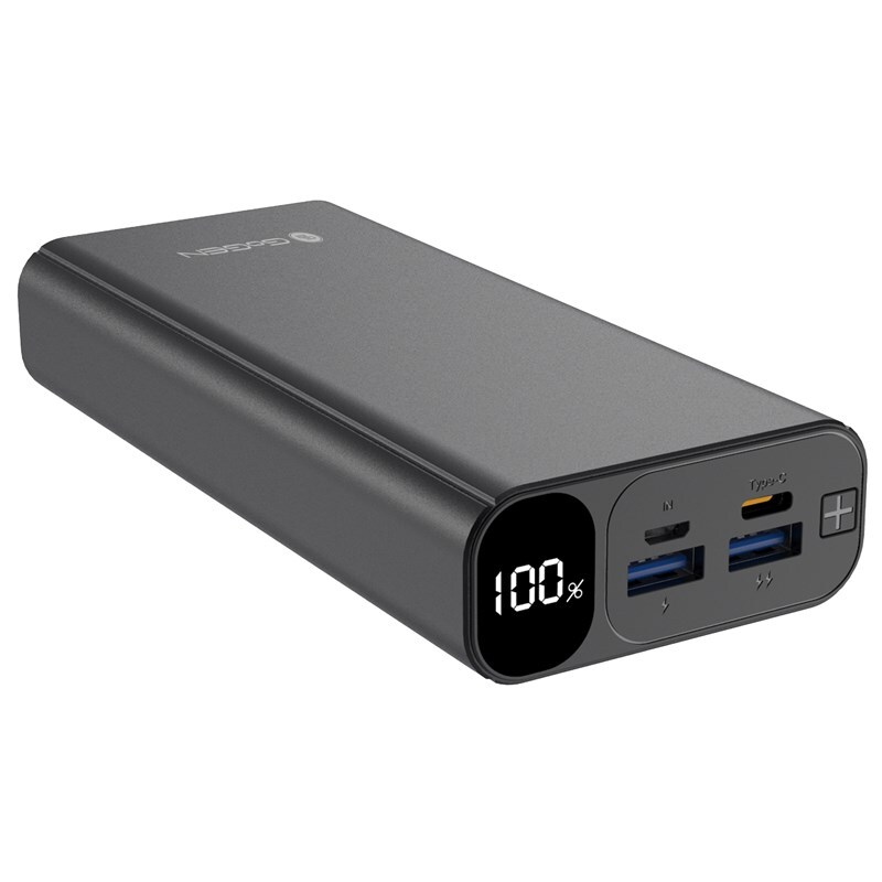 Power Bank GoGEN 20 000 mAh, wejścia micro USB / USB-C, wyjścia USB-C / 2xUSB, Power Delivery, aluminiowe wykonanie, wyświetlacz LED, kolor czarny