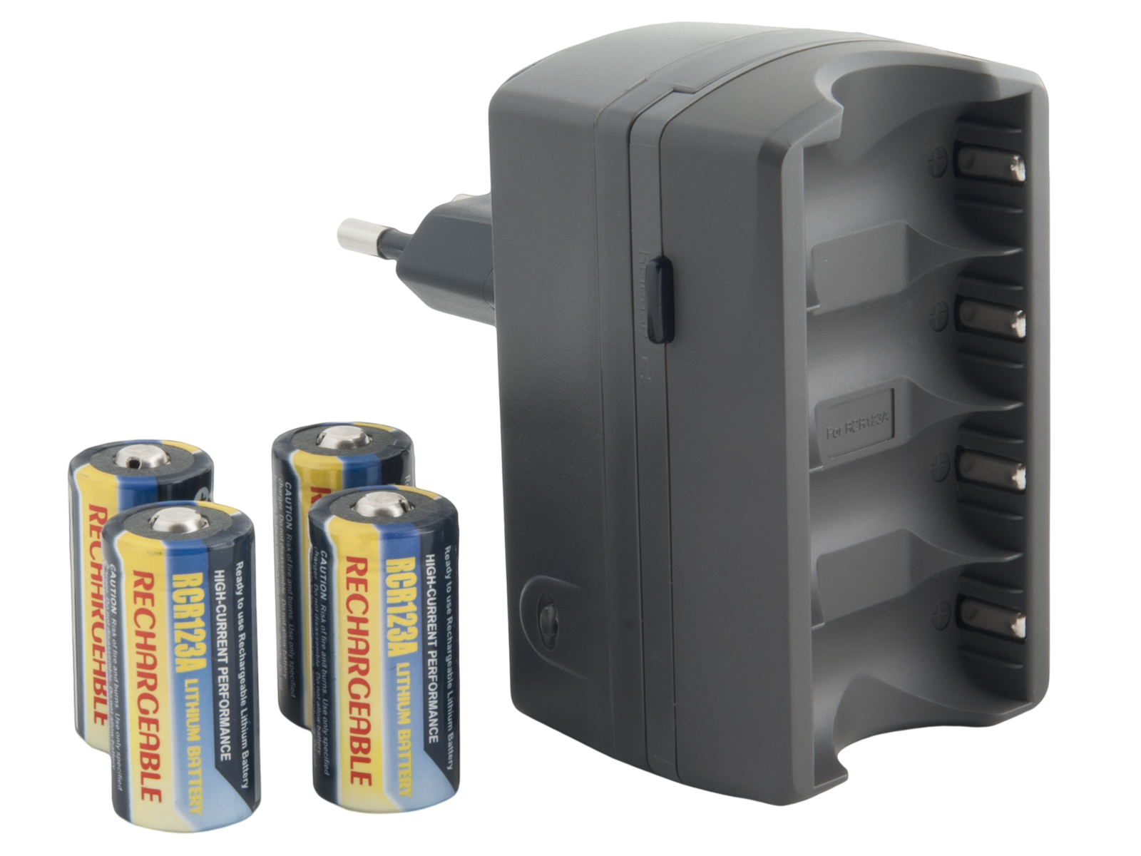 Nabíjecí souprava pro nabíjení akumulátorů typu CR123.Rozměry: 79,95 x 49,87 x 51,60mmVarování: Pouze pro nabíjení baterií, které jsou označeny jako RECHARGEABLE s napětím 3V, není určeno pro nabíjení Li-ion baterií 3,7V ani jednorázových lithiových baterií * vstup: 100-240AC, výstup: DC...