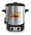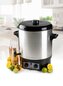 Ten garnek do pasteryzacji o pojemności 27 litrów to uniwersalny pomocnik nie tylko do klasycznego pasteryzowania w słoikach, ale także do gotowania dużych ilości zup, soków czy innych potraw. Dzięki praktycznemu kranowi spustowemu można go również używać jako dystrybutora ciepłych napojów na większych imprezach. Regulowany termostat pozwala utrzymywać żądaną temperaturę z dokładnością ±5 °C, co zapewnia perfekcyjne pasteryzowanie oraz idealne warunki do podawania napojów.