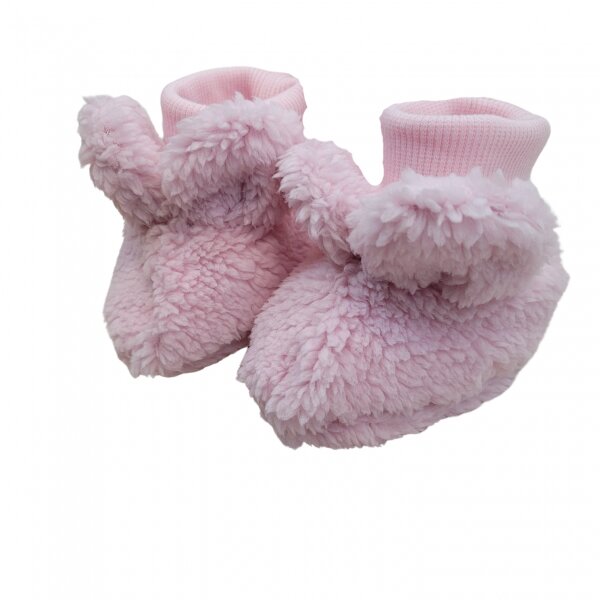 Chlupáčkové botičky/capáčky pro miminko medvídek - růžové; 56/62 (0-3m)