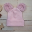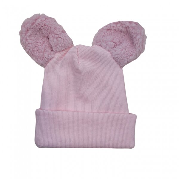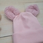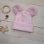 Dvouvrstvá žebrovaná čepička s oušky medvídek - růžová; 56/62 (0-3m)