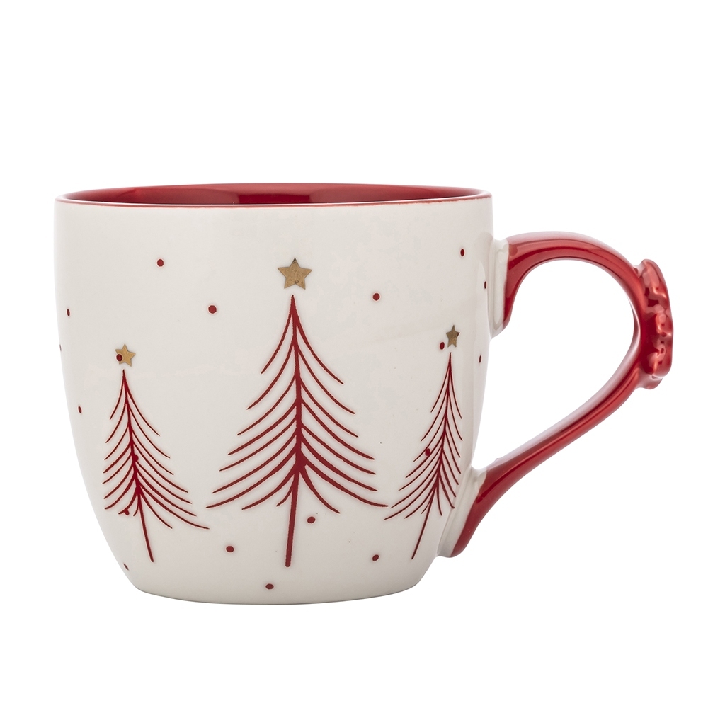 KUBEK CHOINKA CZERWONA NBC 460 ML Z DEKORACJĄ NA UCHU COLOR BOX