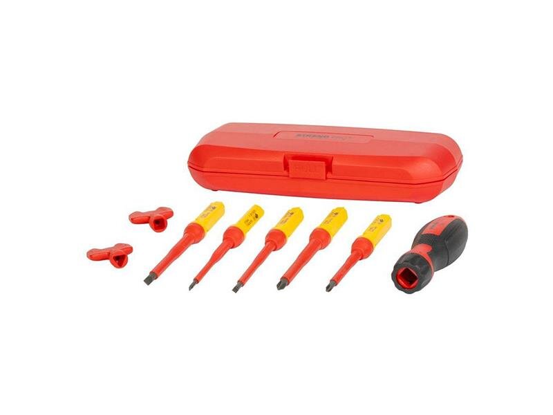 Obsahuje ploché a Phillips šroubováky s izolací VDE, která poskytuje bezpečnost při práci pod napětím až do 1000 V.