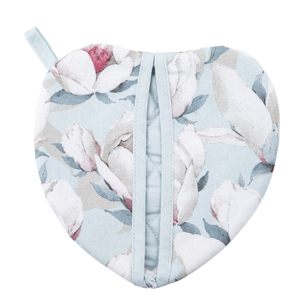 MAGNOLIA BŁĘKITNA ŁAPKA KUCHENNA W KSZTAŁCIE SERCA 20X22 CM BAWEŁNA 100%