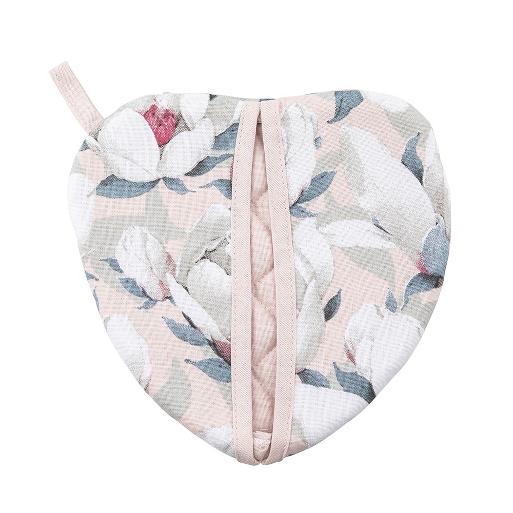 MAGNOLIA RÓŻOWA ŁAPKA KUCHENNA W KSZTAŁCIE SERCA 20X22 CM BAWEŁNA 100%