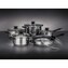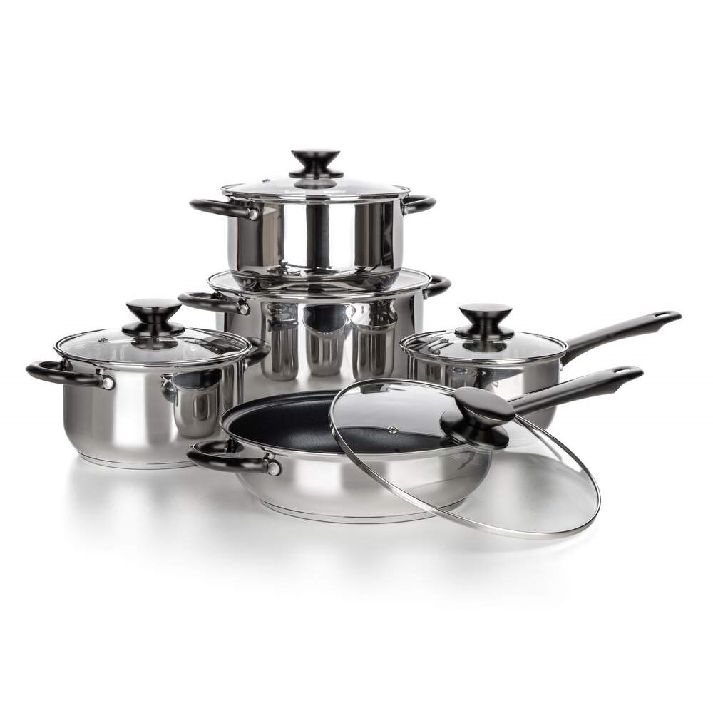 Sada nerezového nádobí SWING Black 10 ks obsahuje: rendlík 16 x 9 cm s poklicí, hrnec 18 x 10,5 cm s poklicí, hrnec 20 x 11,5 cm s poklicí, hrnec 24 x 13,5 cm s poklicí, pánev s nepřilnavým povrchem 24 x 6,5 cm s poklicí. Nádobí lze používat na všechny typy sporáků. Tloušťka dna: 0,38 mm nerez /...