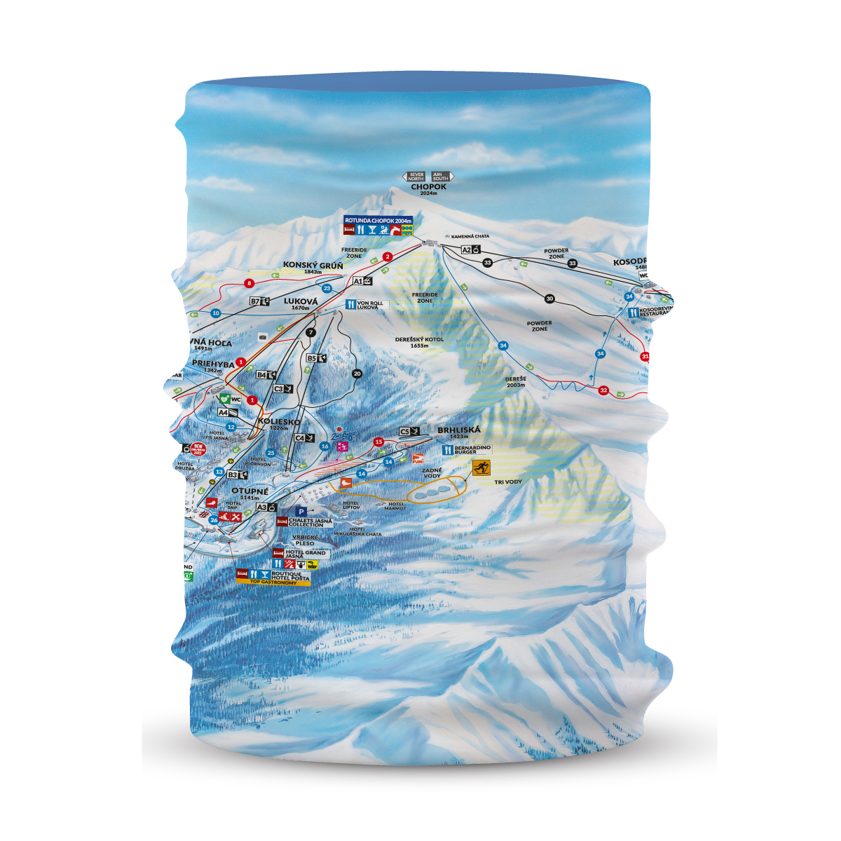 Tištěné mapy jsou out, s naším praktickým multifunkčním šátkem, který využiješ jako nákrčník, ochranu obličeje, čelenku nebo čepici, navíc s designem mapy, se na horách neztratíš. Dokonce se nemusíš bát ani deště, náš multifunkční šátek s mapou snese každé počasí a udrží ten v teple a pohodlí. Je vyrobena z příjemného elastického materiálu, který zahřeje a rychle schne.