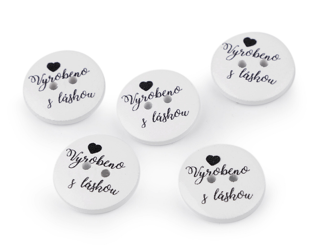 Dřevěný dekorační knoflík Vyrobeno s láskou - 500 ks - 3 bílá
