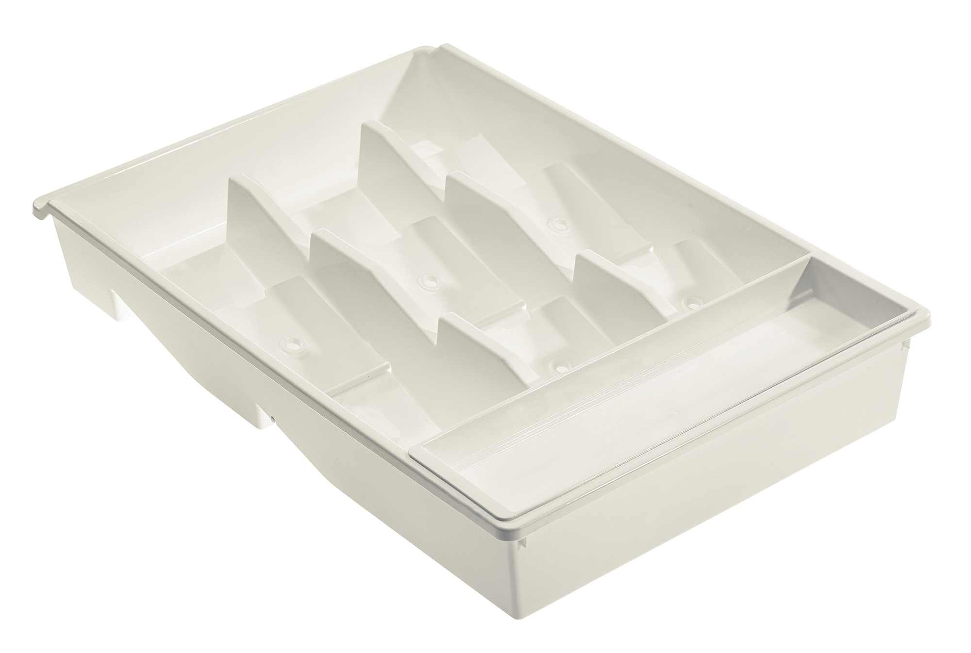 Příborník BELLA PLUS s tácem bílá ;43,6x28,7x7,1 cmZásobník na příbory Bella Plus je vybaven praktickými klopami na různých přihrádkách, které jsou navrženy tak, aby lépe organizovaly obsah zásuvky a zpřístupňovaly jej. Přídavný tácek nabízí ideální místo pro malé kuchyňské náčiní, které...
