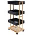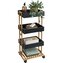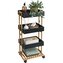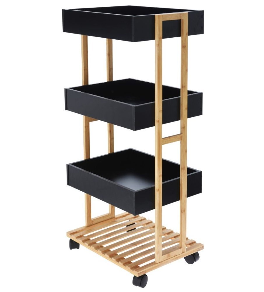 Tento praktický pojízdný regál je ideální do koupelny nebo jiných prostor, kde je potřeba efektivní úložný prostor. S kvalitními bambusovými nožkami a černými MDF policemi je tento regál nejen funkční, ale i elegantní.