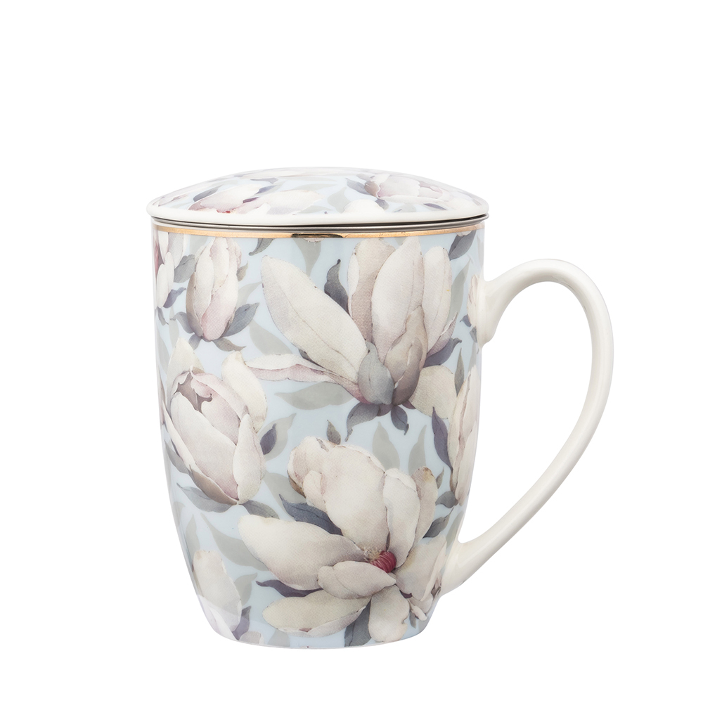 MAGNOLIA BŁĘKITNA KUBEK Z POKRYWKĄ I ZAPARZACZEM NBC 350 ML W OPASCE
