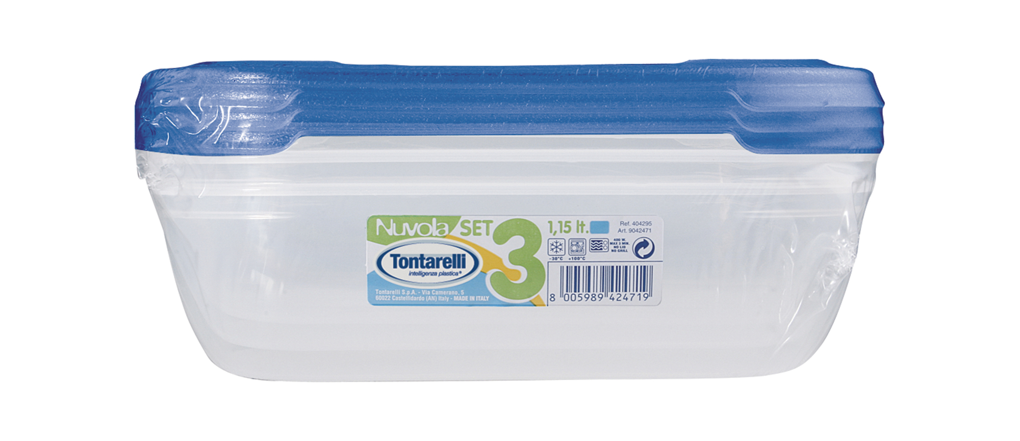 Dóza na potraviny 3x1,15L Nuvola modrá transparent, obdelník, 21.4X15XH6CMNádoby Nuvola jsou nutností pro ty, kteří rádi připravují jídlo, udržují neustále uklizenou ledničku a mrazničku a mají po ruce nádoby vhodné do mikrovlnné trouby. Jsou lehké a odolné, jsou vybaveny nasazovacím víkem proti...
