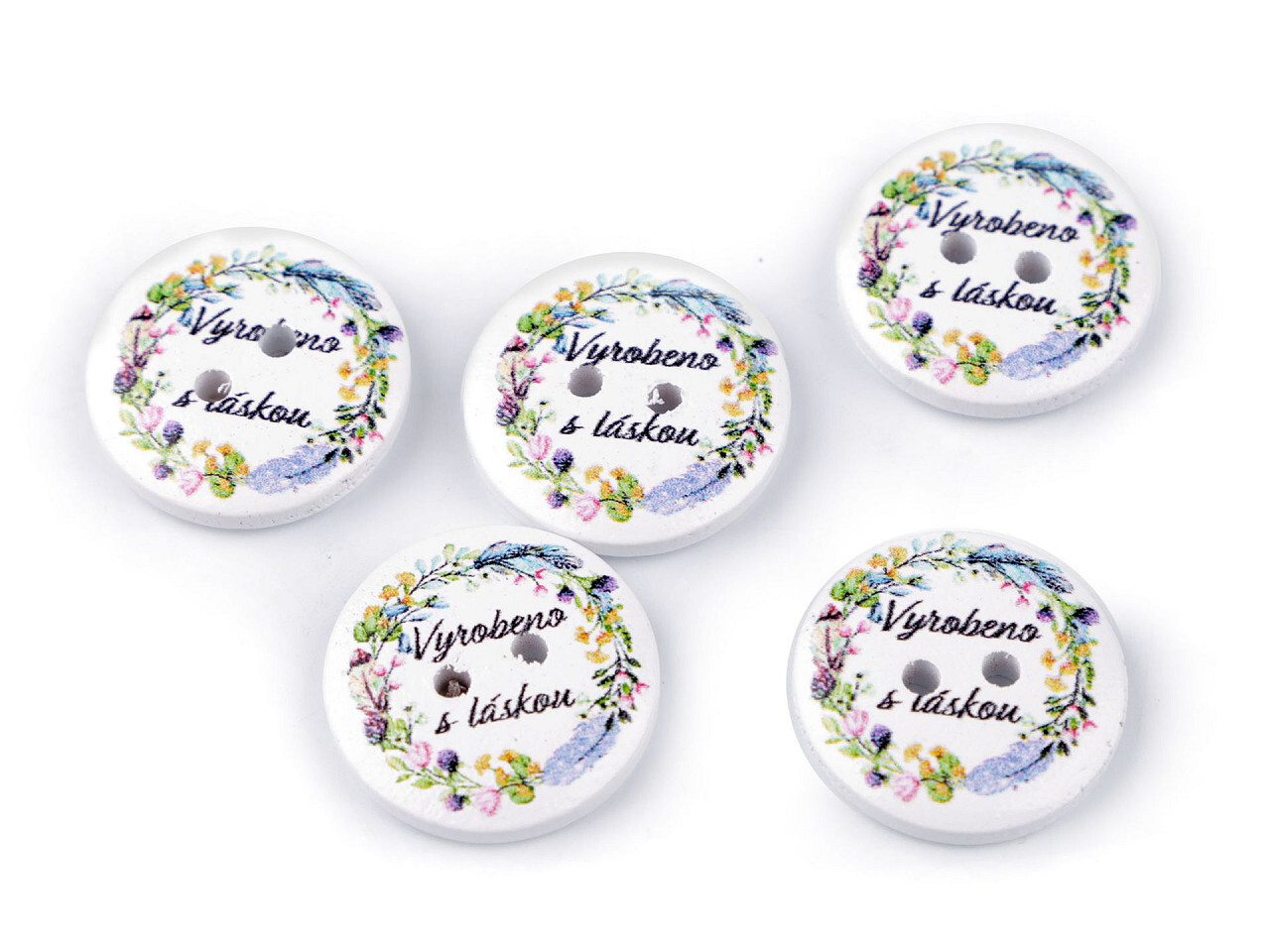 Dřevěný dekorační knoflík Vyrobeno s láskou - 500 ks - 1 bílá