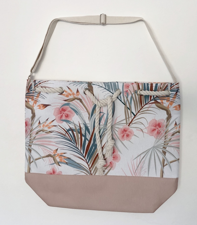 Koopman, Plážová taška palmové listy 54 x 44 x 18 cm, tm. béžová