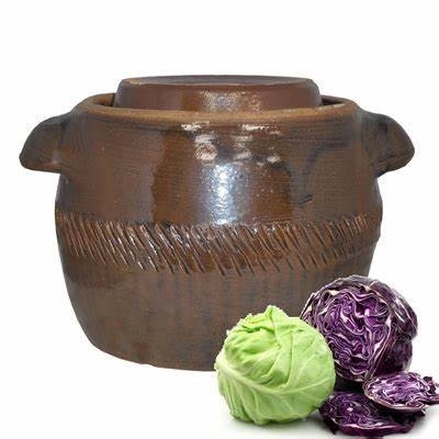 Kamionkowy słój z pokrywą, odpowiedni do kiszenia kapusty lub ogórków.