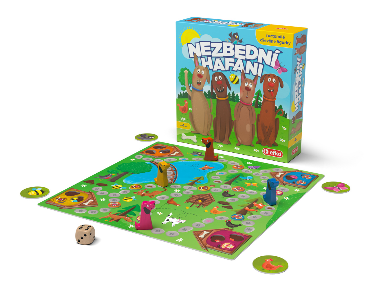 Nadszedł czas obiadu i psie mamusie muszą zagonić swoje szczenięta do domu. Która suczka zrobi to pierwsza? Prosta, zabawna gra planszowa z ilustracjami Lucie Charvátové rozwija małą motorykę i cierpliwość dzieci. Zawiera również cztery drewniane figurki piesków. Wyprodukowano w Czechach. przeczytaj całość