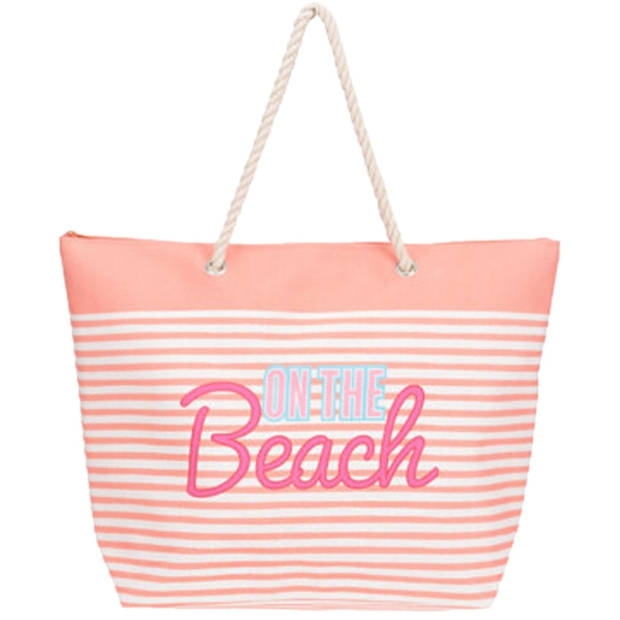 Koopman, Plážová taška BEACH 39 x 38 x 16 cm, meruňková-bílé pruhy