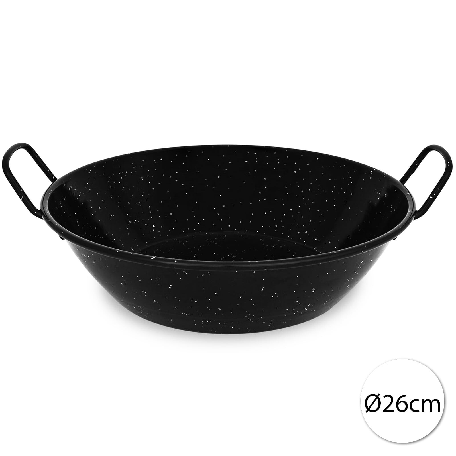133690 Pánev PAELLA 26 cm hluboká, 2 úchytySmaltovaná pánev pro přípravu jídla paella, ke smažení, grilování, zapékání. I servírování. Na plynový, sklokeramický, elektrický sporák. I na otevřený oheň.Objevte smaltovanou pánev na paellu, která je perfektní volbou, jak si vychutnat autentické...