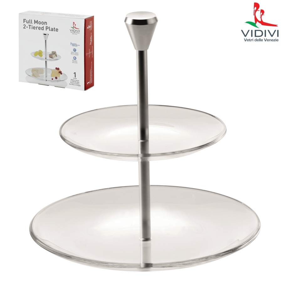 VIDIVI, 2 patrový skleněný podnos (etažérka) FULL MOON, 15 / 21 cm