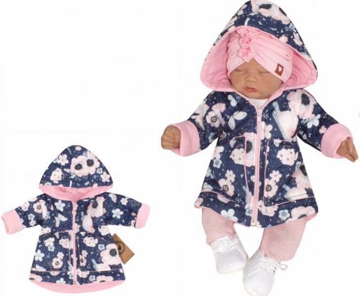 Z&Z Přechodová prošívaná bundička s kapucí - Květy, granát, vel. 80; 80 (9-12m)