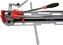 Řezačka dlaždic l-600 mm. Základna z tlakově litého hliníku s namontovanými dvěma pohyblivými podpěrami pro podporu velkých dlaždic. Ložisková montážní jednotka je namontována na stabilních ocelových vedeních z trubek 16 mm. Řezací nůž - kotouč, průměr 8 mm, trvale namontovaný na trnu, průměr 10...