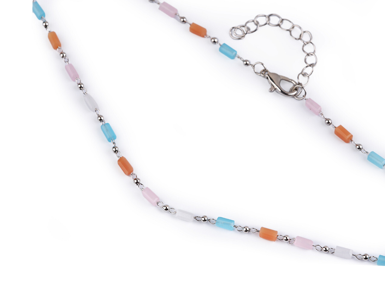 Náhrdelník z nerezové oceli se skleněnými korálky - 1 ks - 5 multikolor stříbrná