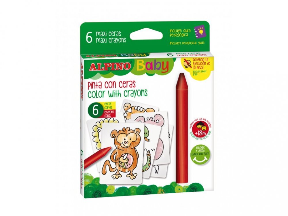 Barevné dětské voskovky Alpino Baby 6ks + omalovánkybalení obsahuje 6 extra velkých voskovek pro nejmenší a omalovánky,obsahuje speciální struhadlo a pedagogického průvodce s grafickým návodem podle kterého se může dítě učit naplnoUpozornění: Před podáním hračky dítěti odstraňte všechny části...