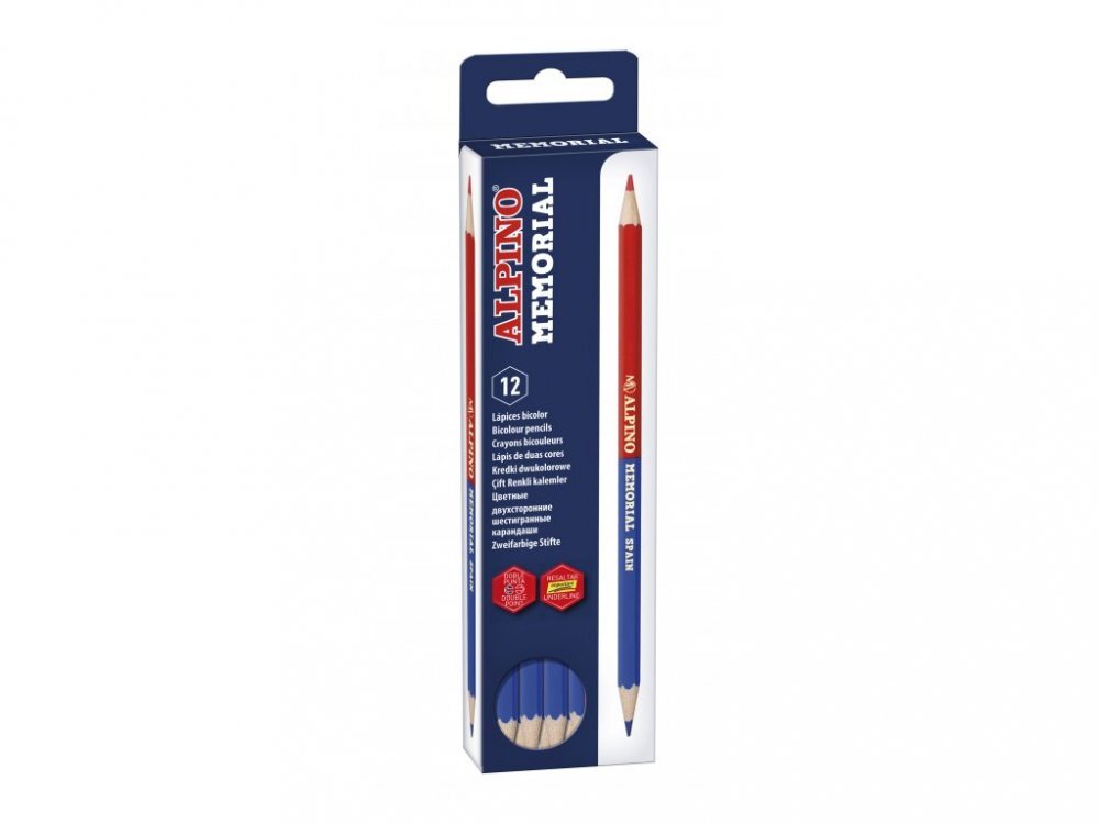 Krabice 12 tužek Memorial, červená a modráPopis: šestihranné tužky, 12 kusů, dvouhroté - dvoubarevné, ideální pro označování nebo zvýrazňování textůUpozornění: Pro děti od 3 let. Obsahuje malé části. Toto balení si uschovejte pro budoucí použití.Alpino je měřítkem kvality v papírnictví od roku...