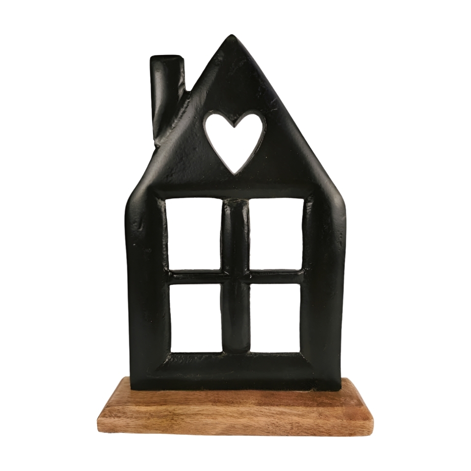 Kovový černý domeček na mangovém podstavci, 28 cm