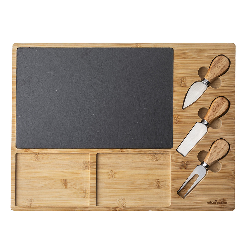 DESKA BAMBUSOWA DO SERWOWANIA SERÓW, 3 NOŻE DO SERA, 40X30X2 CM