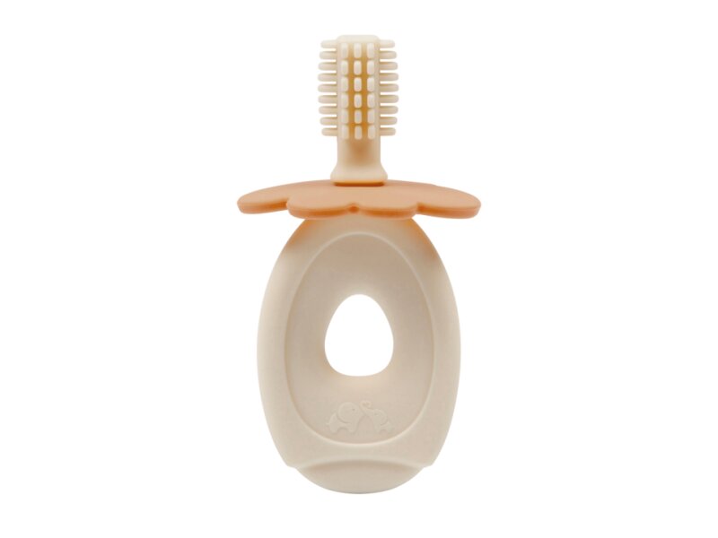 Masażowa szczoteczka do zębów dla najmłodszych jest wykonana z delikatnego, miękkiego silikonu i umożliwia delikatne czyszczenie dziąseł oraz pierwszych ząbków dziecka. Ergonomiczny kształt z szerokim uchwytem został zaprojektowany tak, by małe dziecięce rączki mogły ją łatwo chwycić, a osłona gwarantuje bezpieczne użytkowanie.