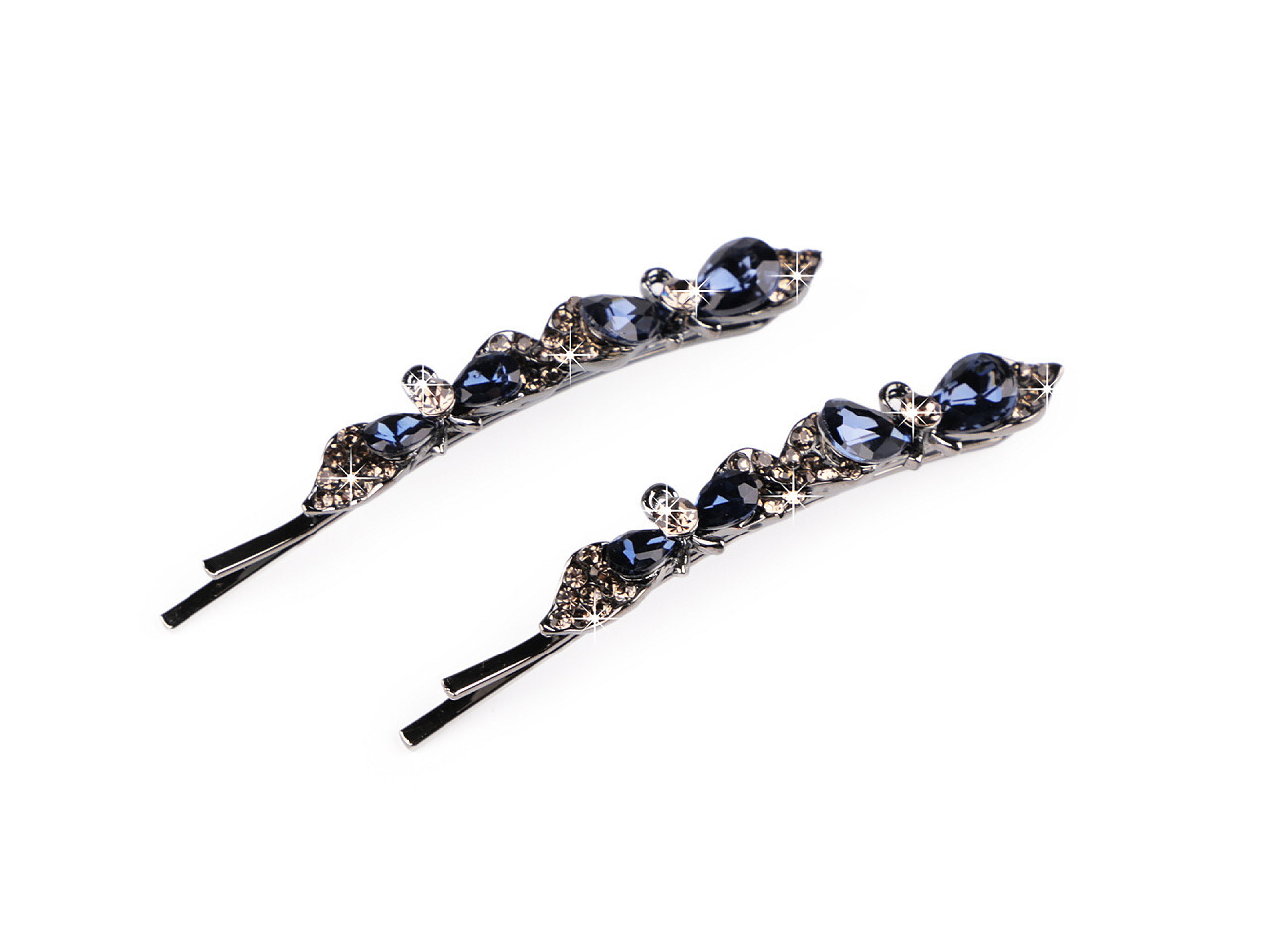 Eleganckie wsuwki do włosów zdobią błyszczące fasetowane kamyczki. Wykonane są z wysokiej jakości biżuteryjnego metalu, dobrze trzymają się we włosach. Sprawdzą się na różne okazje towarzyskie, jak również do codziennego noszenia, dyskretnie ozdobią Twoją fryzurę.