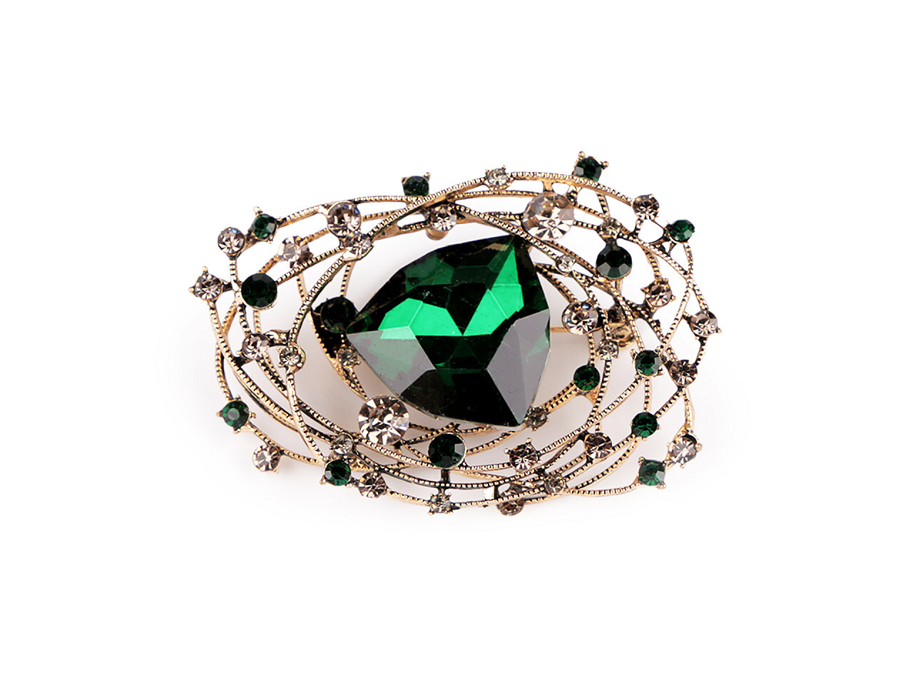 Brož s broušenými kamínky a kamenem - 1 ks - 3 zelená tmavá zlatá