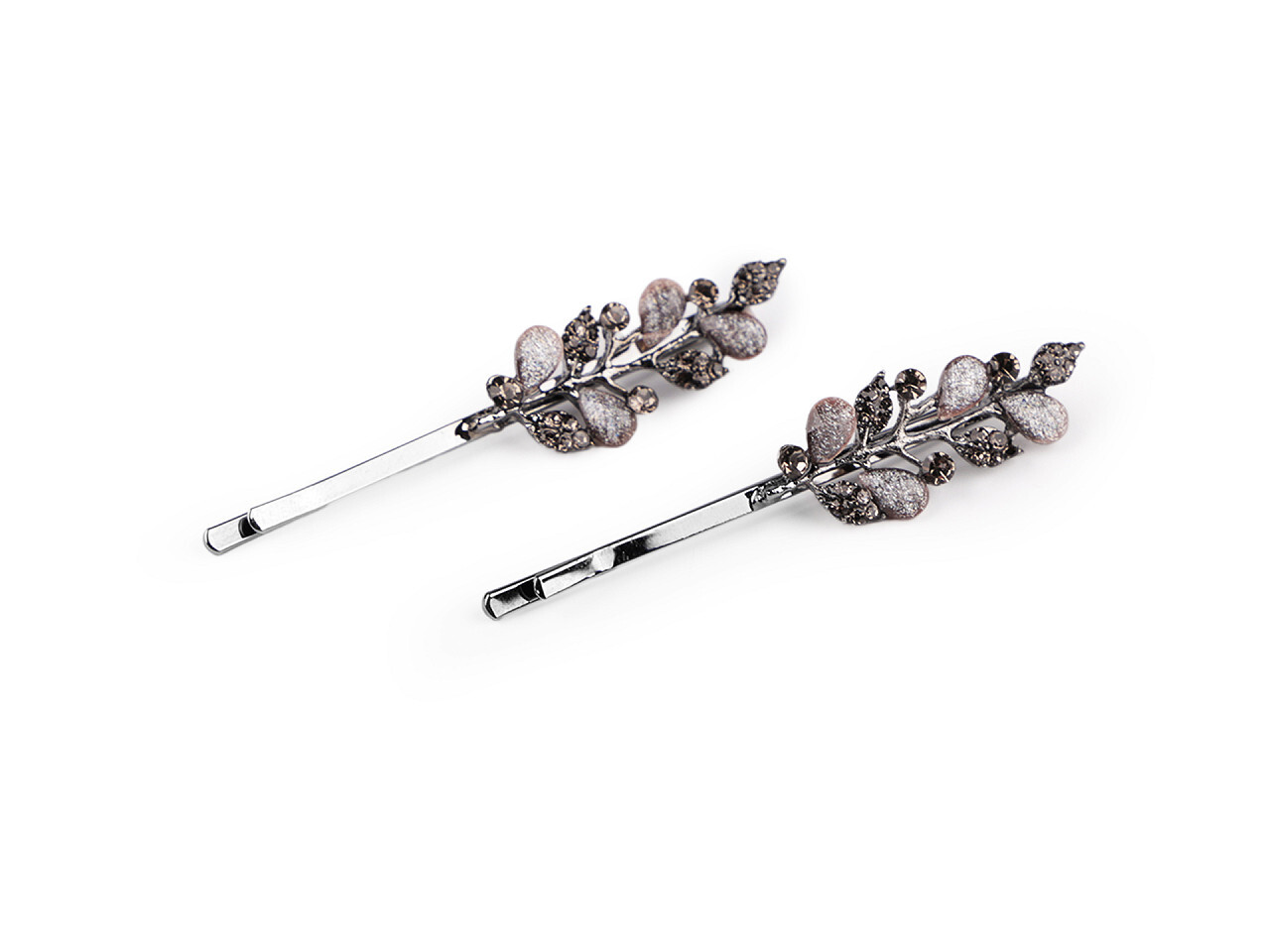 Sponky do vlasů / pinetky s broušenými kamínky květy, list - 2 ks - 2 antracit list