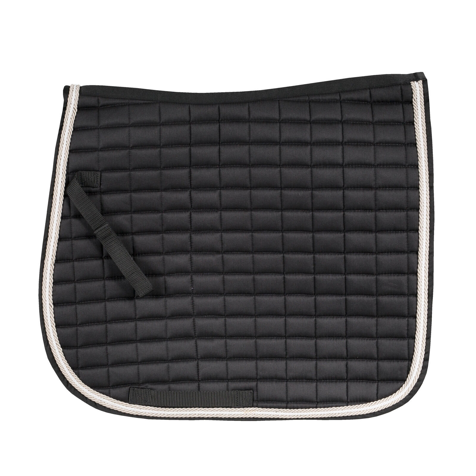 PopisTři řady šňůr dodávají této drezurní podsedlové dečce pěkný šmrnc.Okraj této drezurní dečky je ozdoben třemi řadami šňůry pro vysoce kvalitní sportovní vzhled. vysoce střižený kohoutek dodává pohodlí a tkanina odvádějící vlhkost udržuje vašeho koně v suchu a pohodlí. malé prošívání ve stylu...