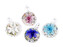 Wisiorki są wykonane ze szkła, w ich środku znajduje się pięknie zabarwiony kwiat. Wokół kwiat jest delikatnie ozdobiony brokatem. Tylna strona jest płaska. Na szyję można zawiesić wisiorek na łańcuszku lub rzemyku dzięki dużemu praktycznemu oczku.