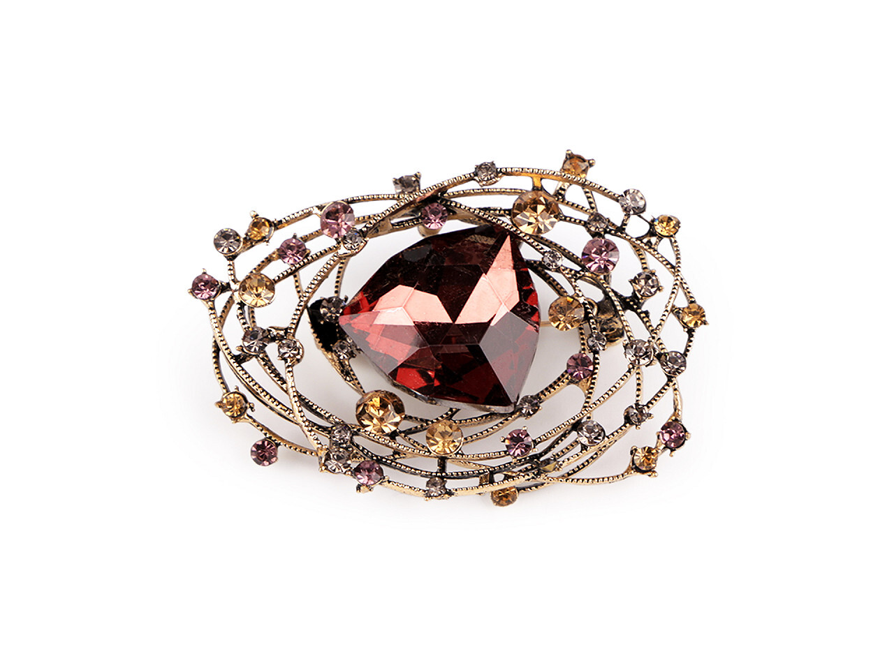 Elegantní brož s velkým kamenem je výrazný módní doplněk, který okamžitě upoutá pozornost svou zářivostí a luxusním vzhledem. Její kovový základ je osázený dalšími broušenými kamínky, které vytvářejí jemné odlesky při každém pohybu. Na zadní straně má brožový špendlík. Můžete ji nosit na oděvech, čepicích, kloboucích, taškách či s ní můžete sepnout šátek.
