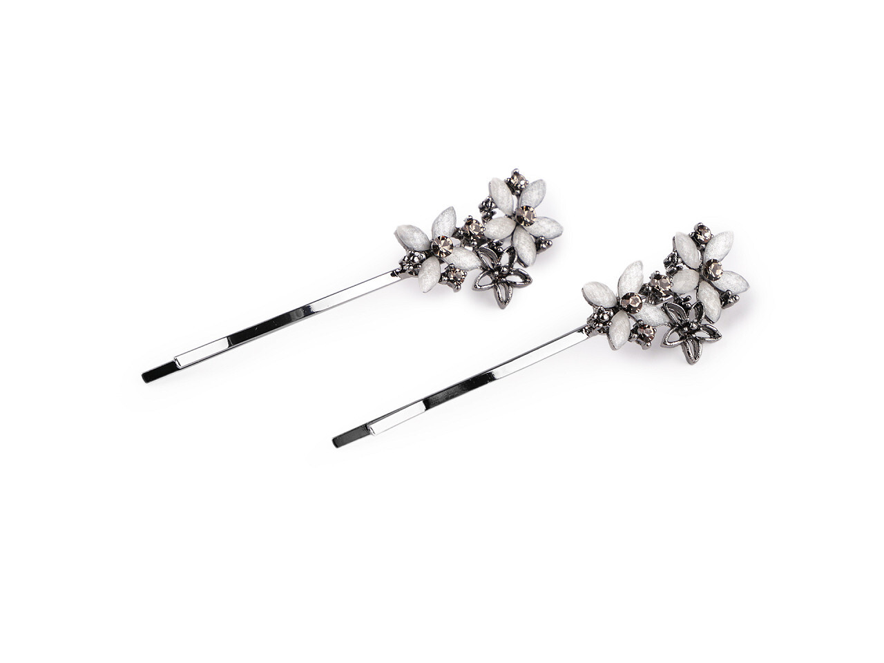 Sponky do vlasů / pinetky s broušenými kamínky květy, list - 2 ks - 1 bílá květy