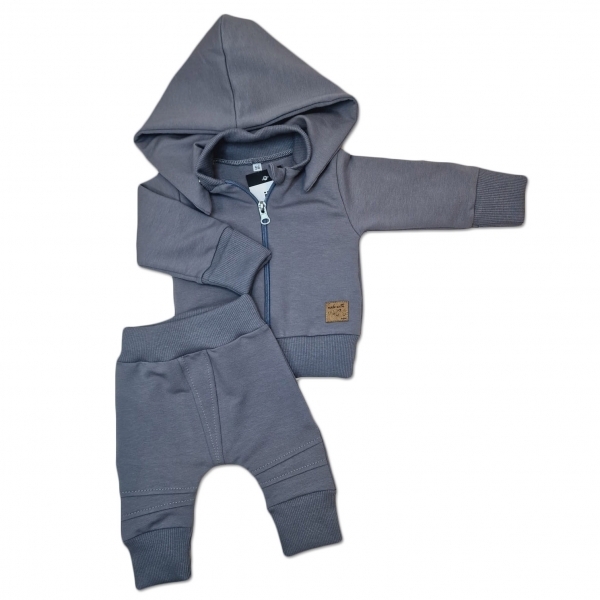 2-dílná bavlněná tepláková souprava s odepínací kapucí - antracit, vel. 68; 68 (3-6m)