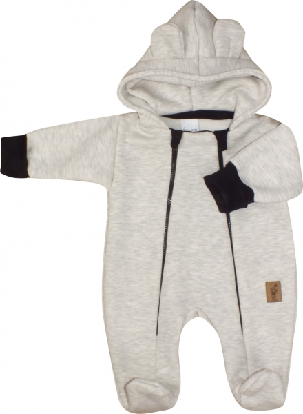 Oteplený dětský overálek se šlapkama a kapucí, Kazum, šedý, vel. 68; 68 (3-6m)